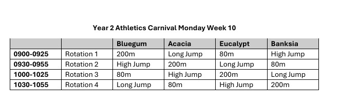 Please note it is not appropriate for students from high school or other classes to come and be spectators at the athletics carnivals. Every day counts in Education Queensland.